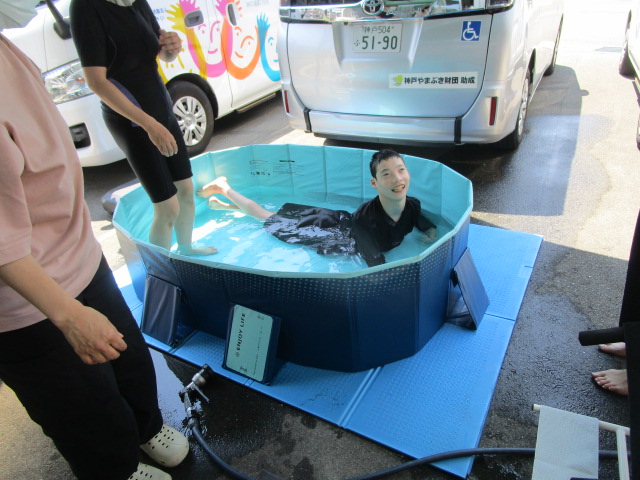 訪問から帰ってきたスタッフに、水鉄砲で水を飛ばす悪い子もいましたが、